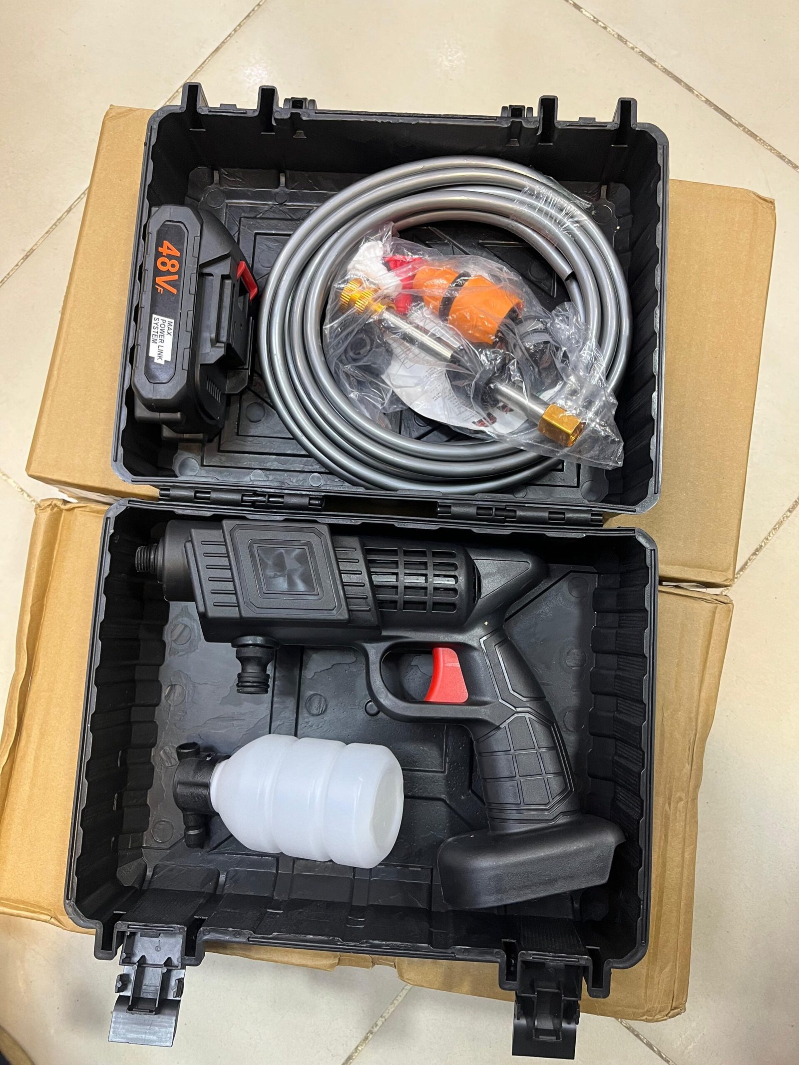 Be the first to review “Single Battery Water Cleaning Gun 🇨🇳 Product Include 2 Water Nozzel 48V Battery Pipe Soap Liquis Bottle” Cancel reply